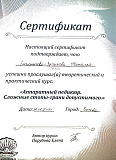 2020 г. – Курс «Онихомикоз. Профилактика. Ведение клиента. Профилактика», «KART Черноземье» г. Воронеж