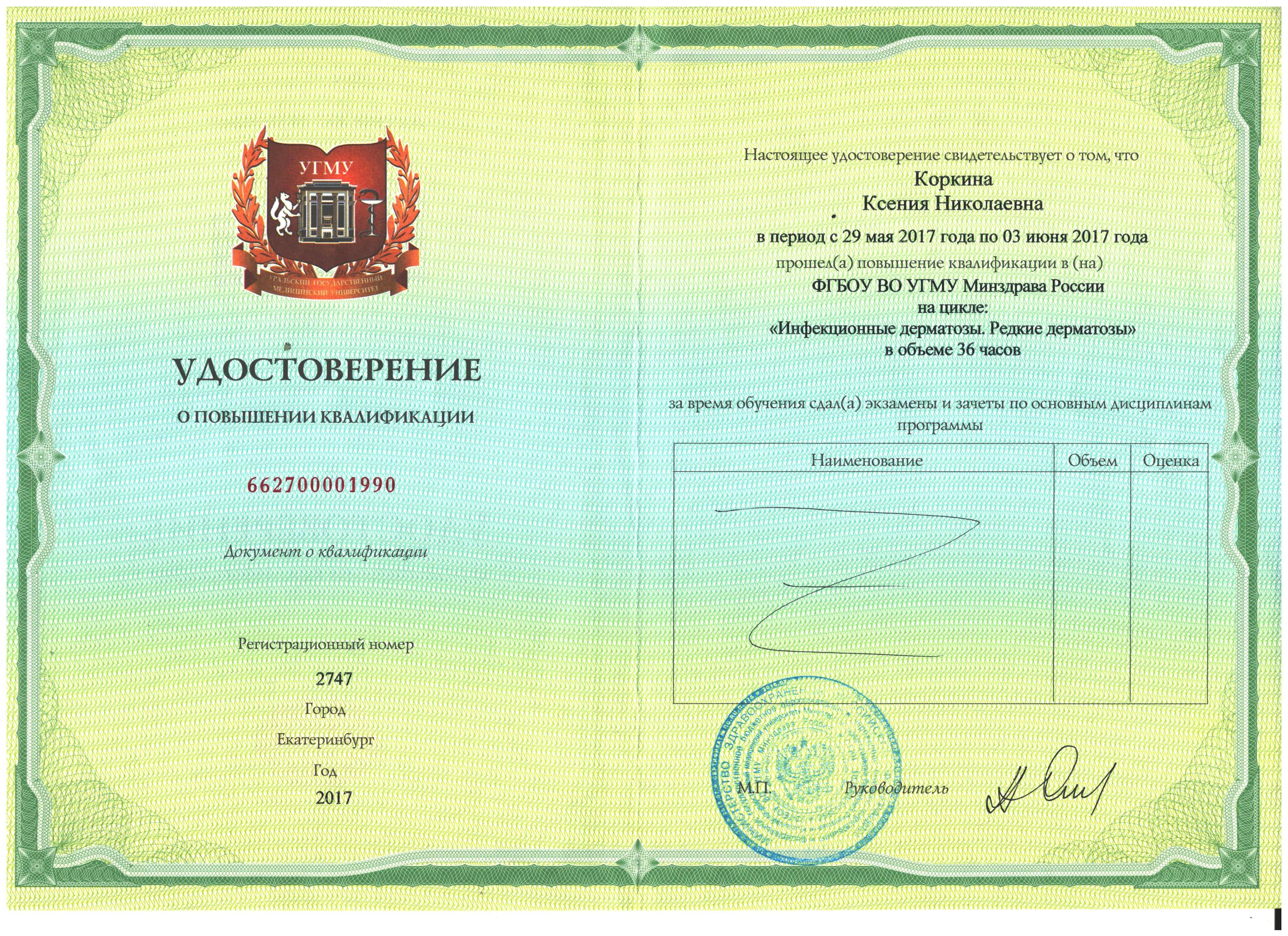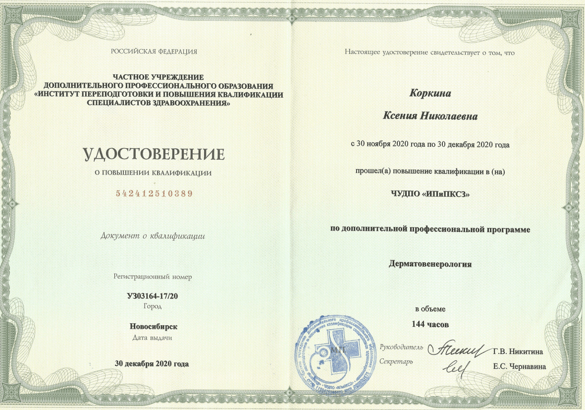 | Специальность/ Должность | Косметология | Дерматовенерология |