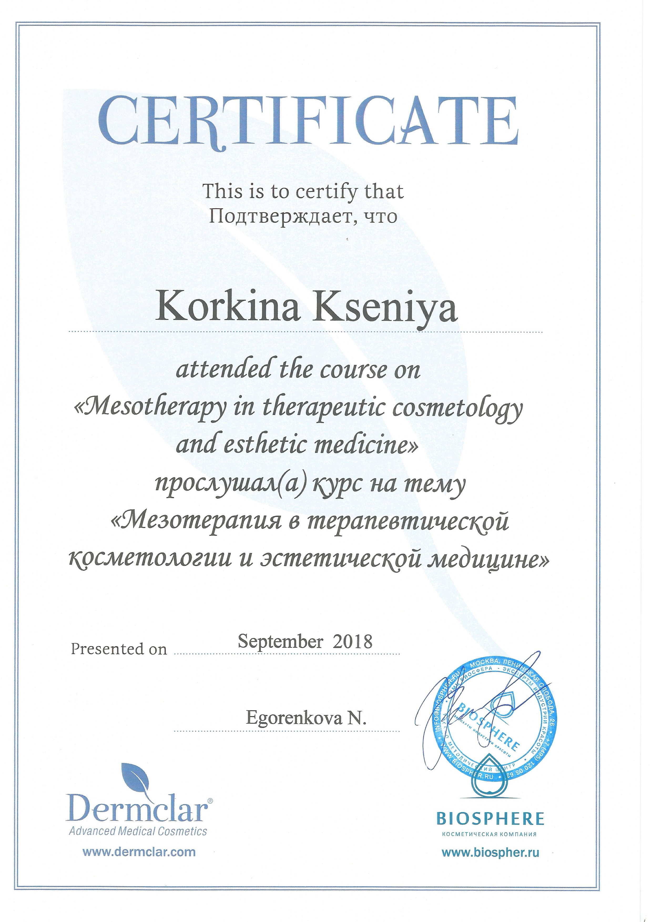 Ксения Николаевна: «Подбираю индивидуальные протоколы коррекции возрастных изменений с учетом соматического статуса пациента. В работе большое внимание уделяю безопасности препаратов и техникам их введения. Считаю, что красота в индивидуальности, а косметология должна лишь подчеркнуть ее. Постоянно повышаю свой профессиональный уровень, посещая семинары, конференции. Буду рада видеть всех желающих у себя на приеме».