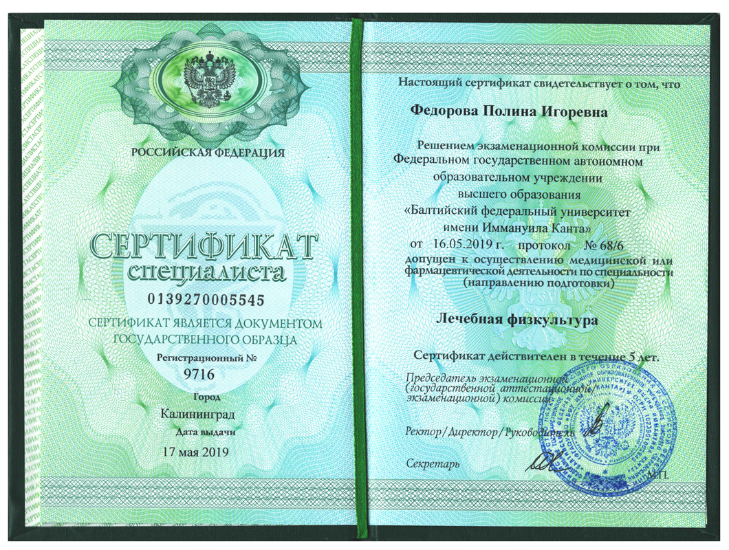 | Уникальный номер реестровой записи об аккредитации | 3 921 031 334 762 |