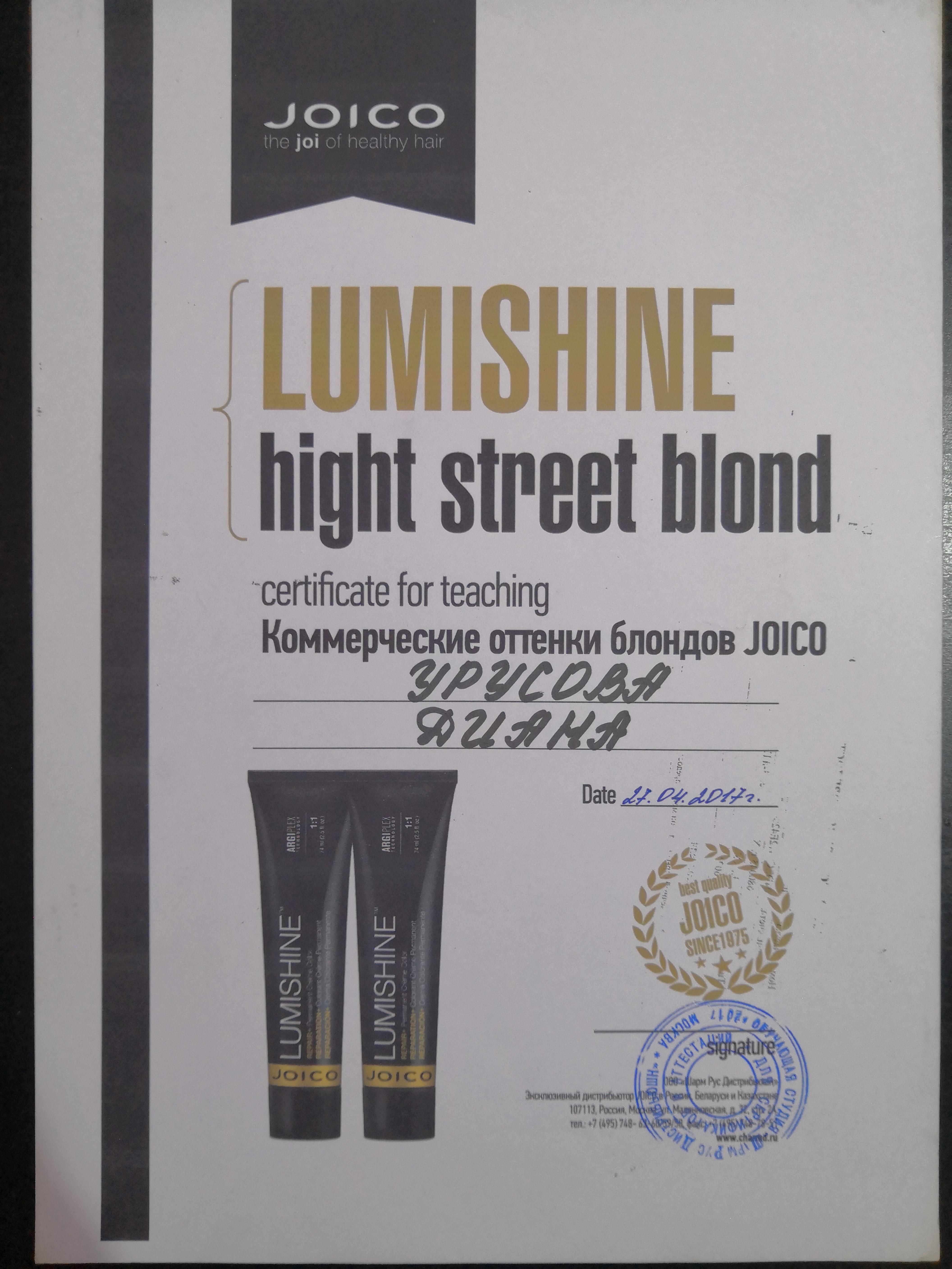 2017 г. – Курс «LUMISHINE hight street blond» коммерческие оттенки блондов JIOCO