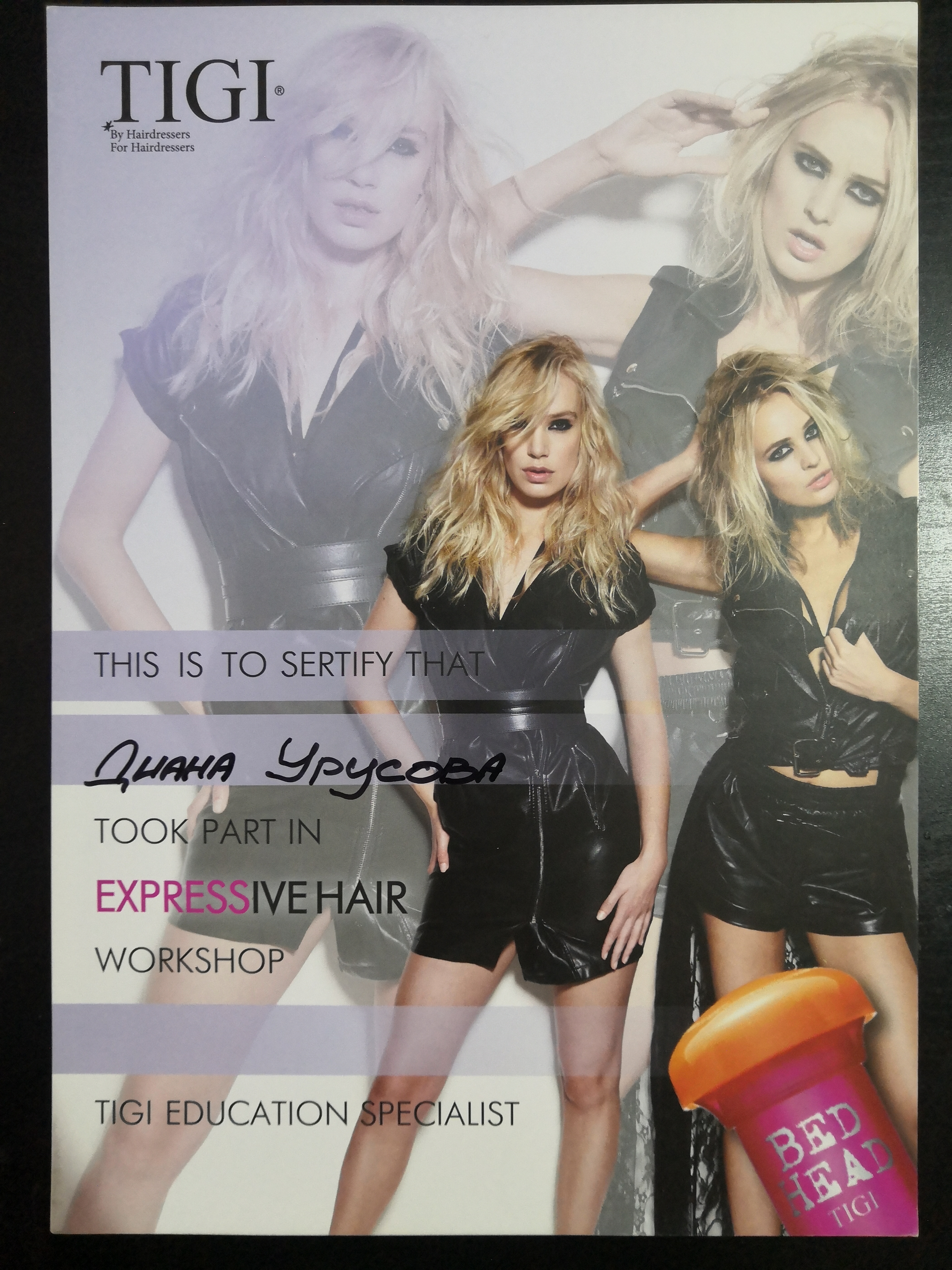 2017 г. – Worksop «TIGI COPYRIGHT» EXPRESSIVE HAIR