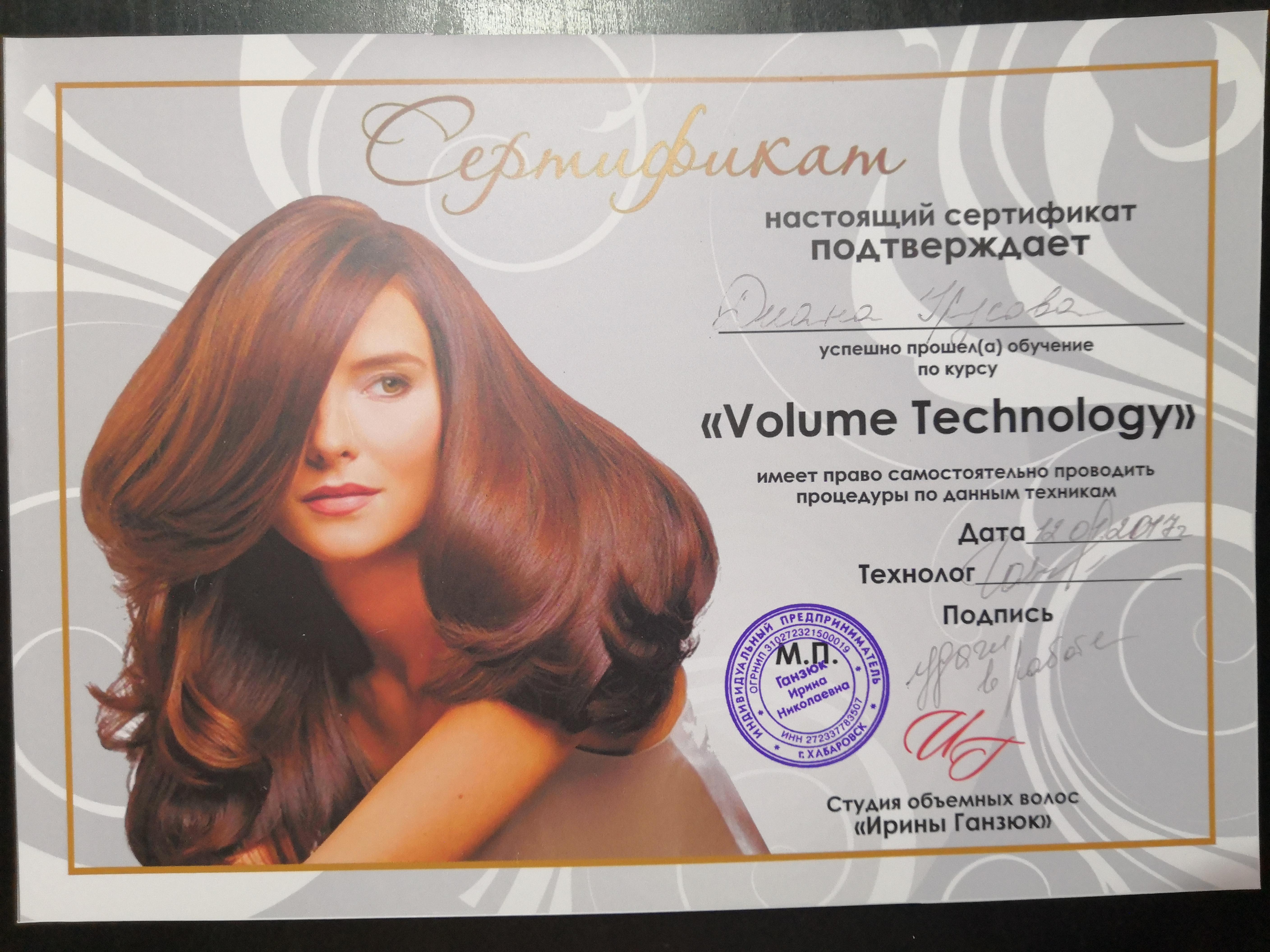 2017 г. – Курс «Volume Technology», Студия объемных волос «Елена Гназюк»
