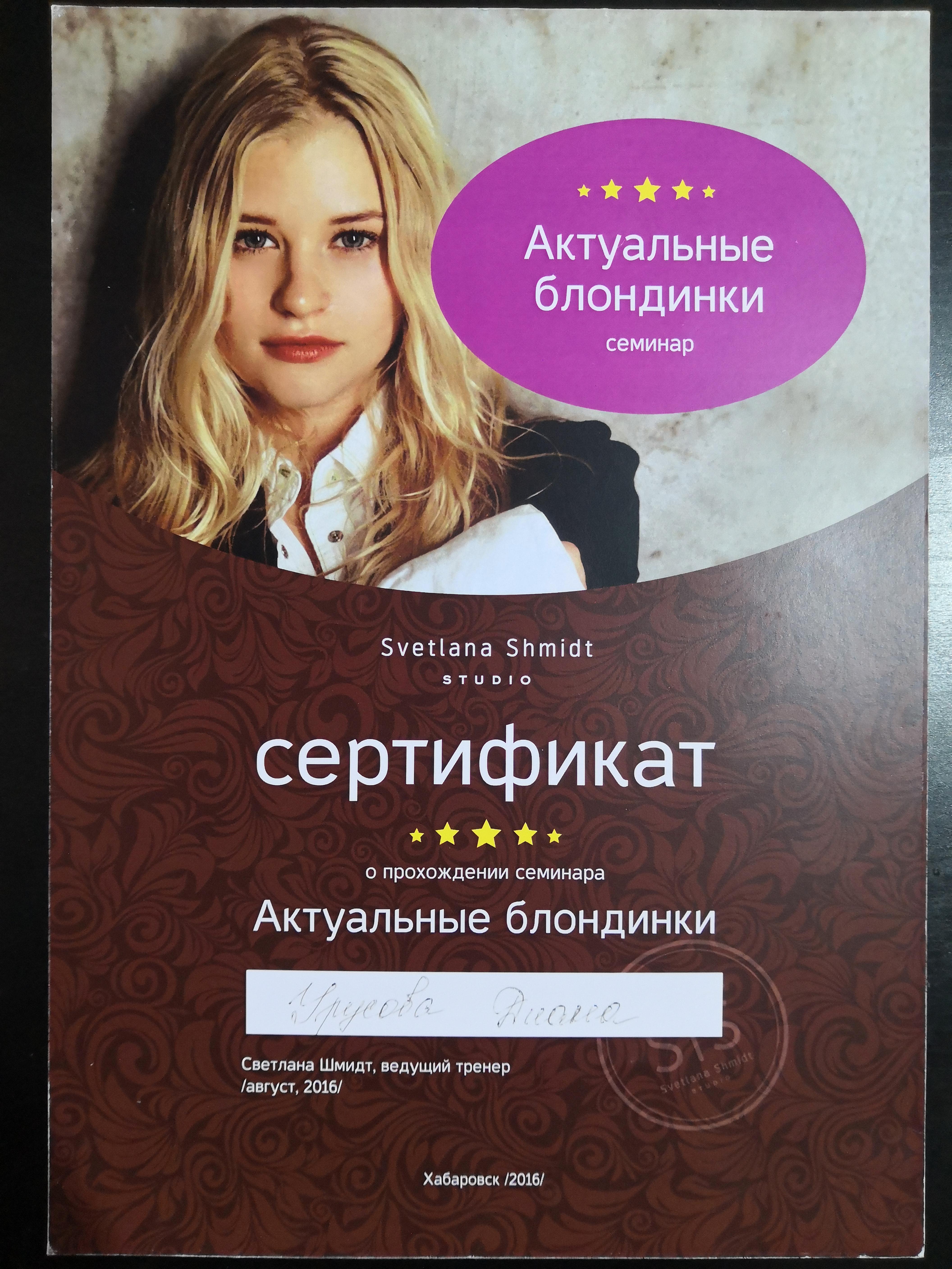 2016 г. – Семинар Светланы Шмидт «Актуальные блондинки»