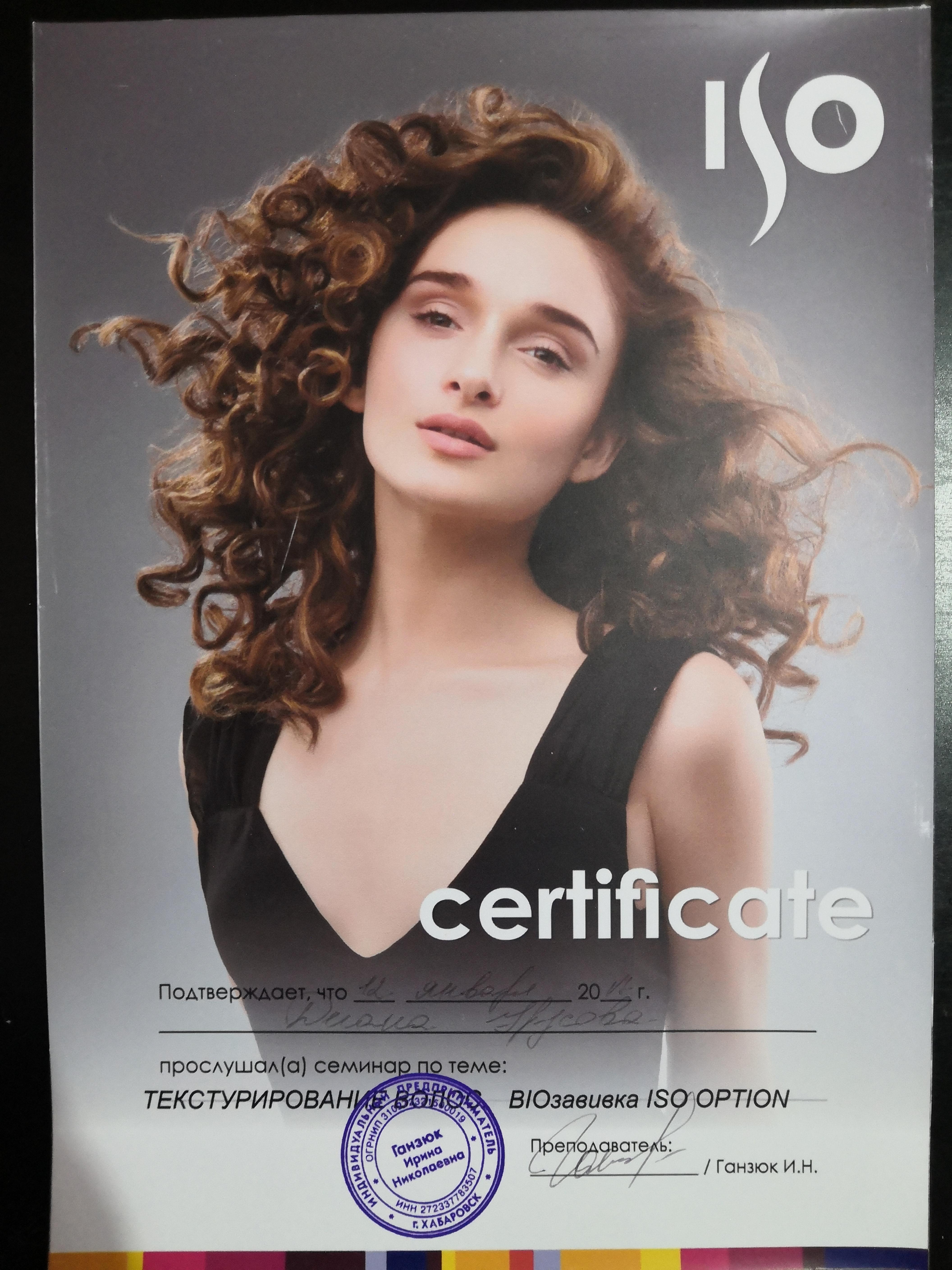 2017 г. – Семинар «Текстурирование волос», «BIOзавивка ISO OPTION», Студия объемных волос «Елена Гназюк»