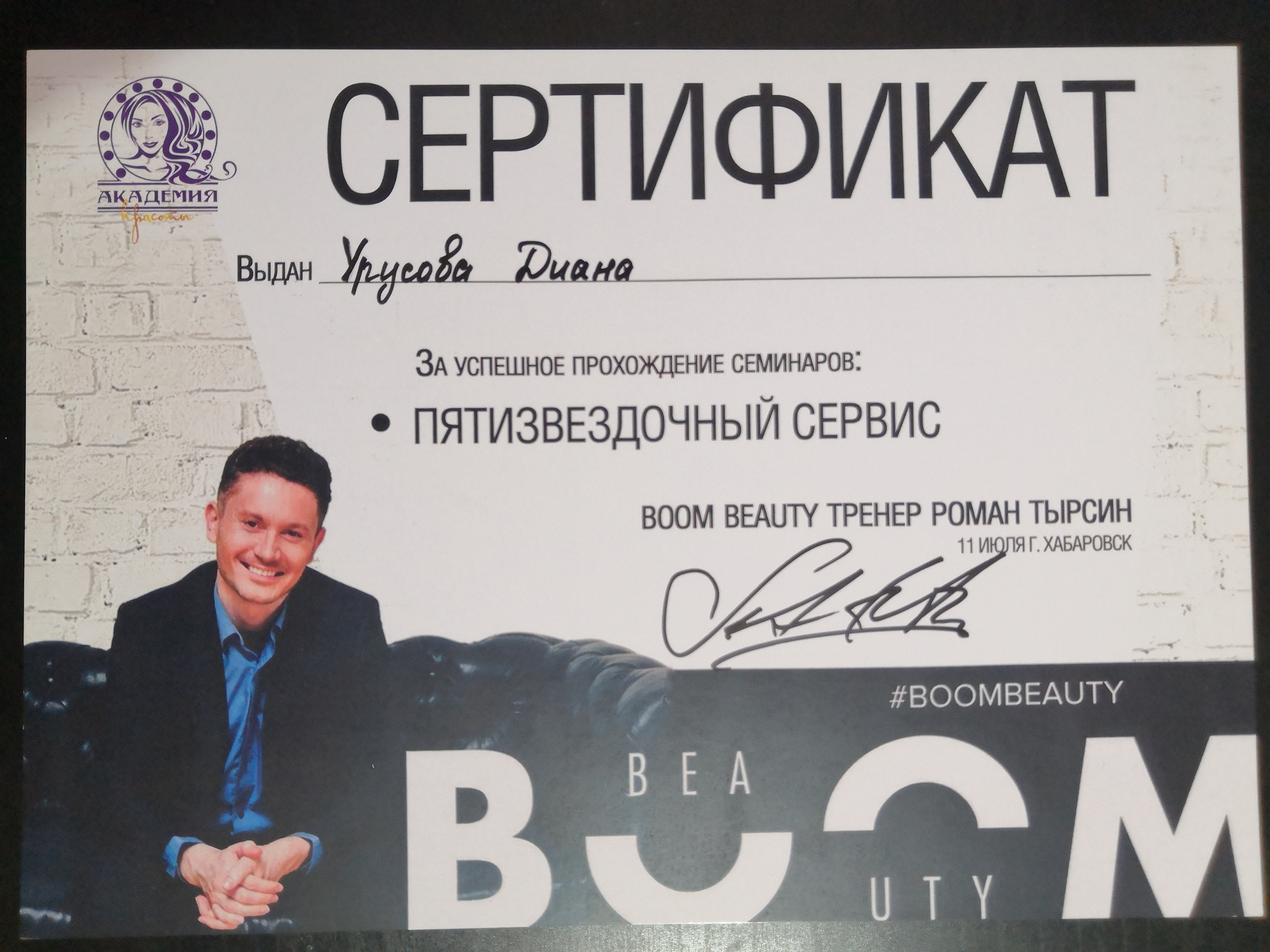 2018 г. – Прошла серию семинаров «ПЯТИЗВЕЗДОЧНЫЙ СЕРВИС», «Академия красоты», г. Хабаровск
