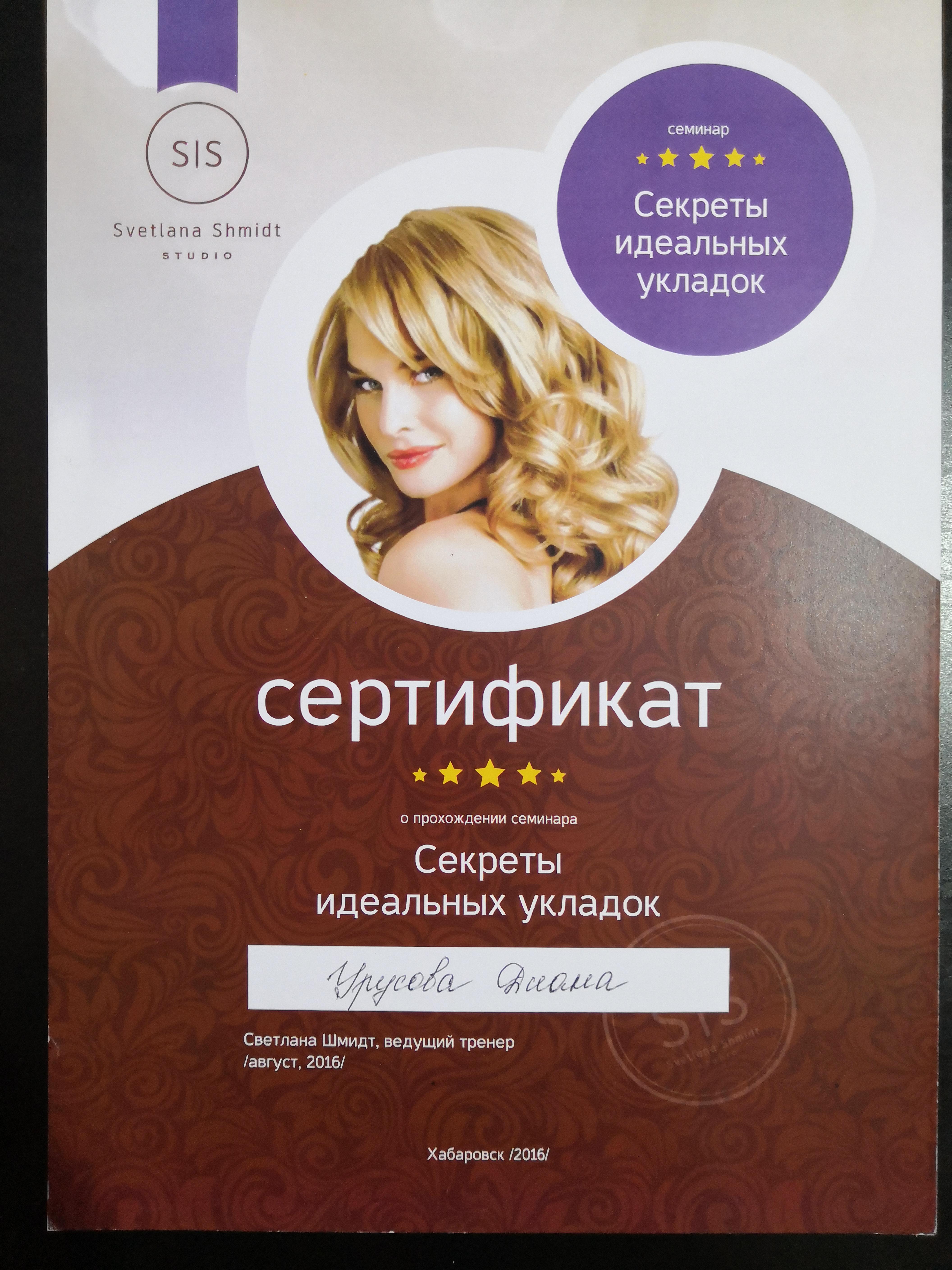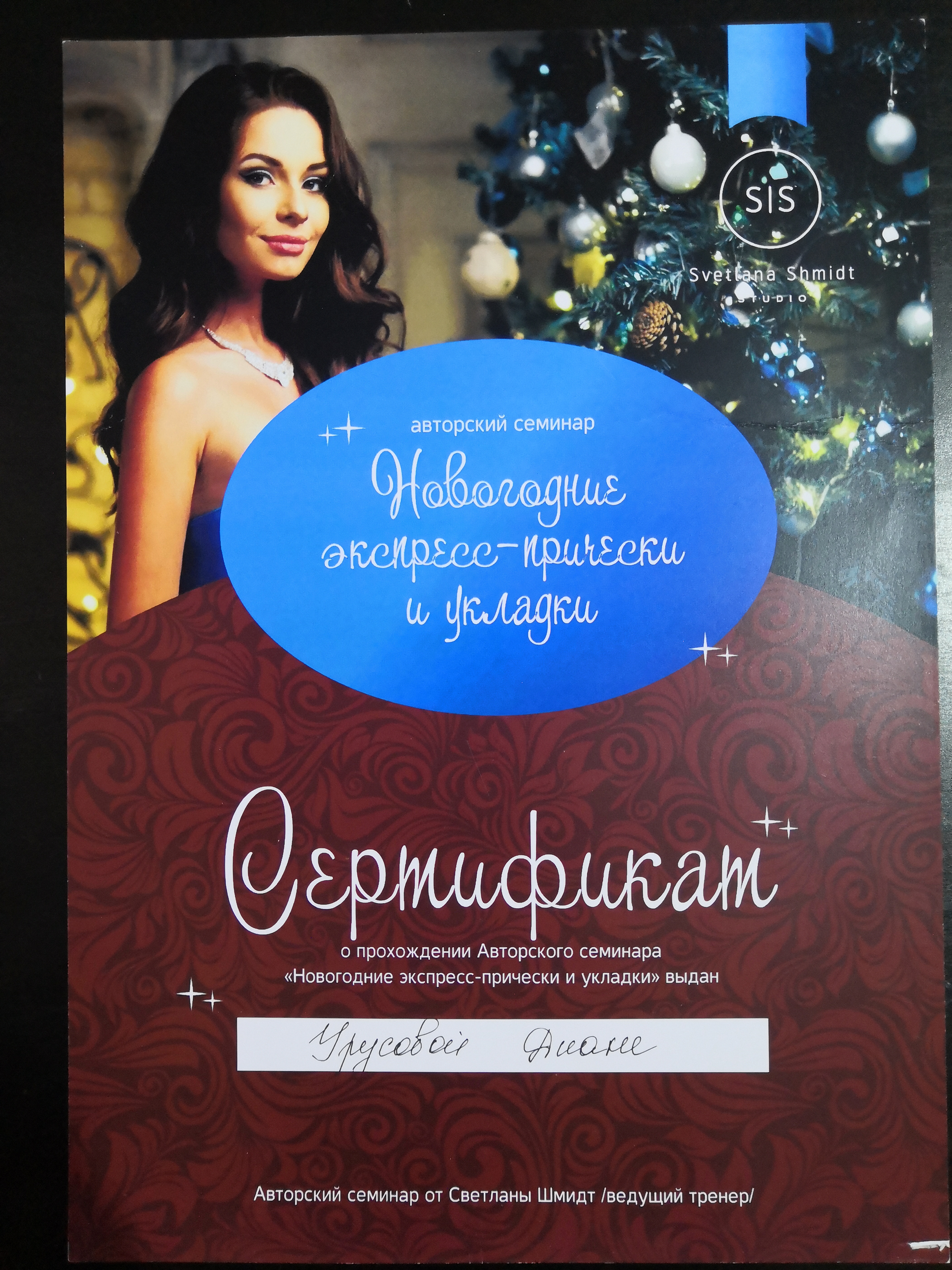 2016 г. – Авторский семинар Светланы Шмидт, «Новогодние экспресс-прически и укладки»