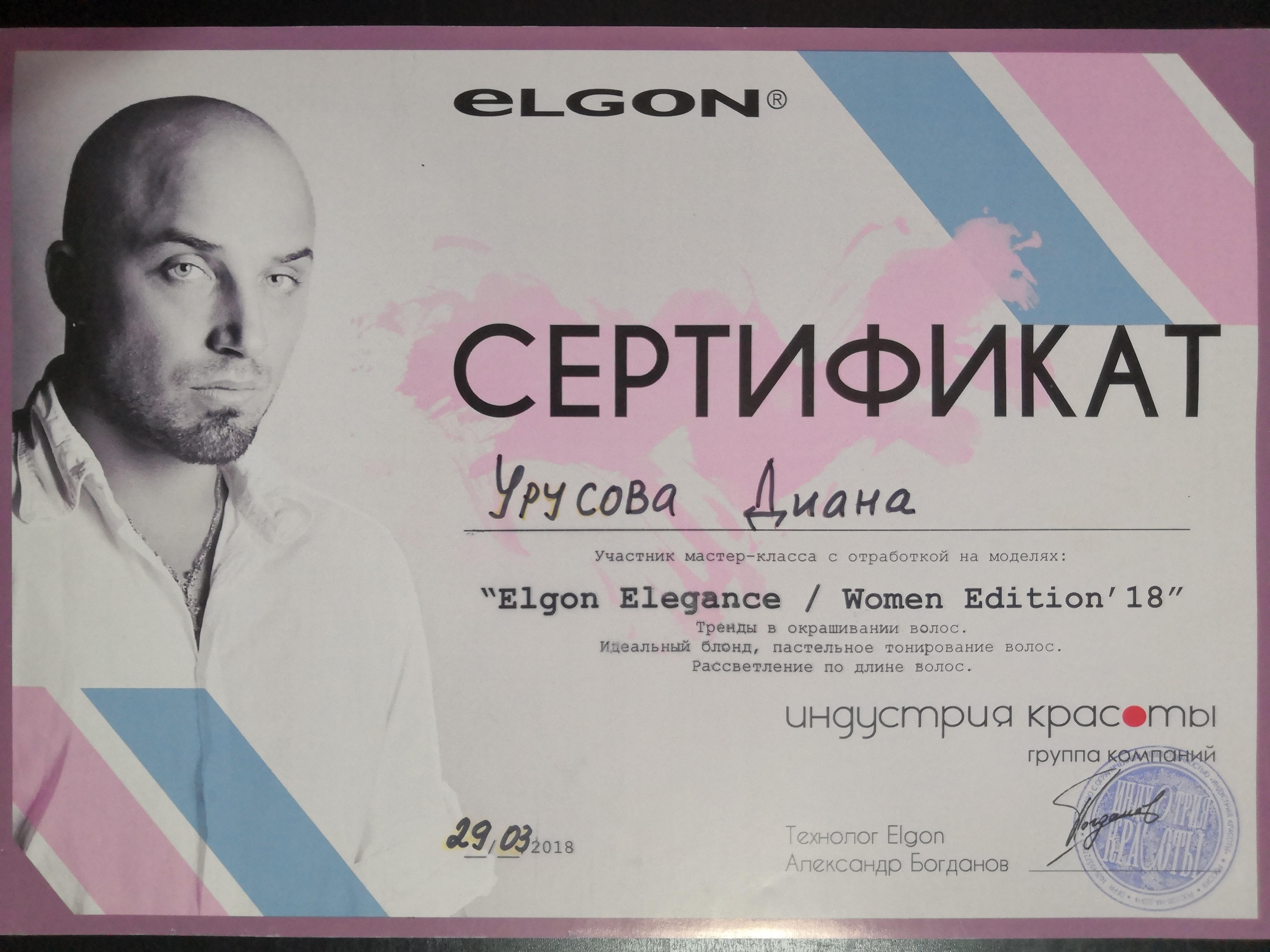 2018 г. – Мастер-класс с отработкой «Elgon Elegance / Women Edition `18». Тренды в окрашивании волос. Идеальный блонд, постельное окрашивание волос. Рассветление по всей длине волос. От группы компаний «Индустрия красоты», г. Хабаровск